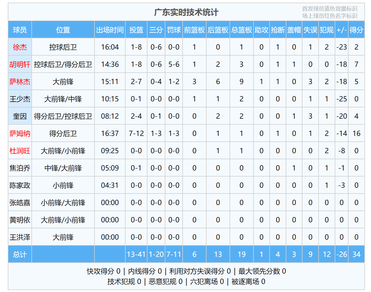 开局打6-26,三分球20中1,半场输对手26分,毫无疑问,这场比赛,对于主场作战的广东队来讲,是一场耻辱性的比赛。